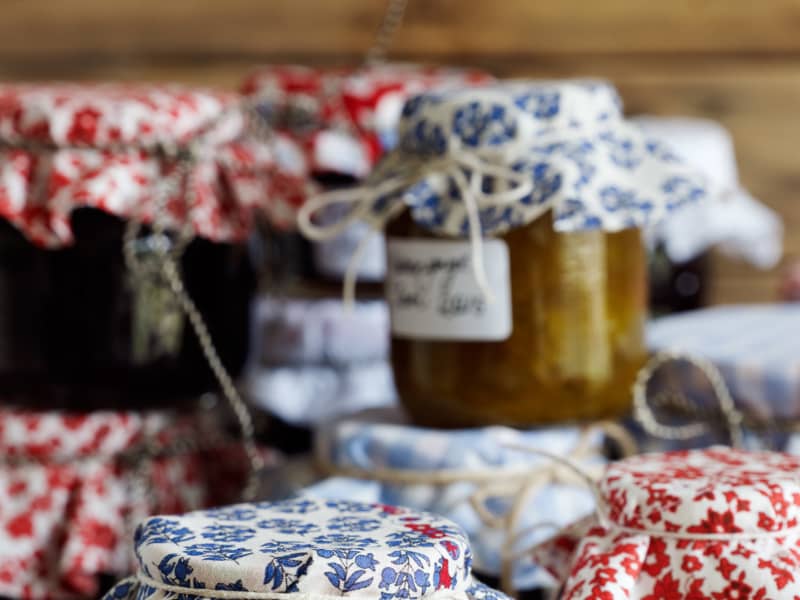 - Have the warm sterilised jars ready either on a wooden board or double thickness of newspaper. Pour jam into jars – this is easily done using a jam jar funnel. Wipe rims of jars with a clean hot cloth (damp), put lids on jars and leave jam to cool.